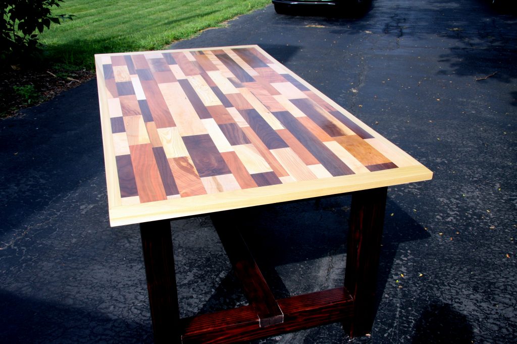 Multi wood species kitchen table