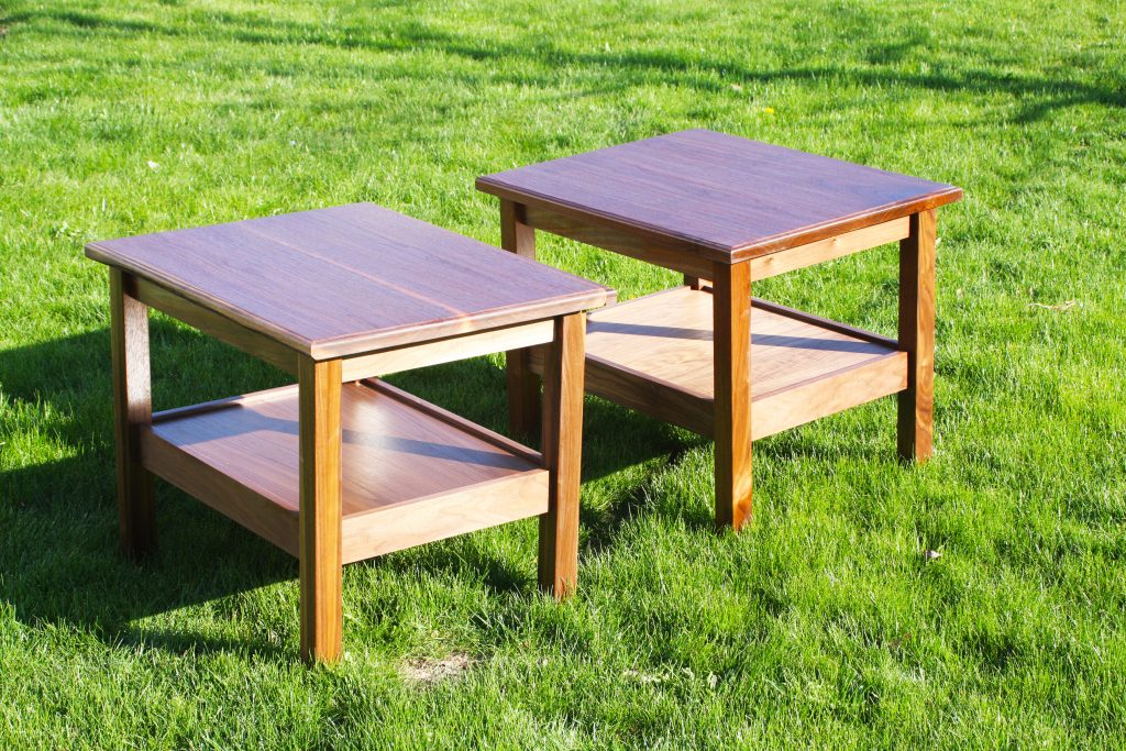 Our cousin Kelly got married last summer to Travis. As usual, I told them they could have anything that I currently had in stock or if there was nothing that fit their needs then I would build something for them. After a while we came up with a plan and the walnut end table shown here were born. These tables are 30 inches deep, 24 inches wide and 24 inches high. They have a tung oil finish.