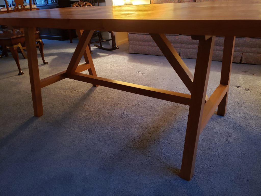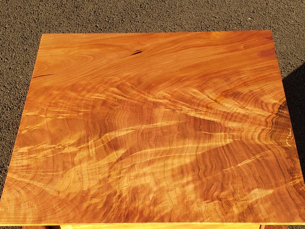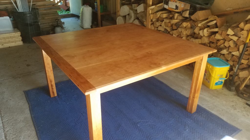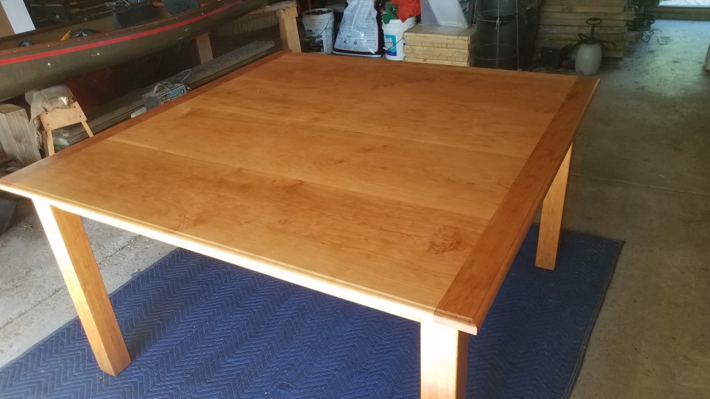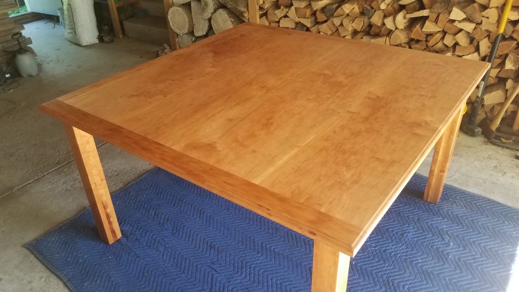This one has a birds eye maple top with a cherry base and measures 22″ x 24″ and is finished with Tung oil.