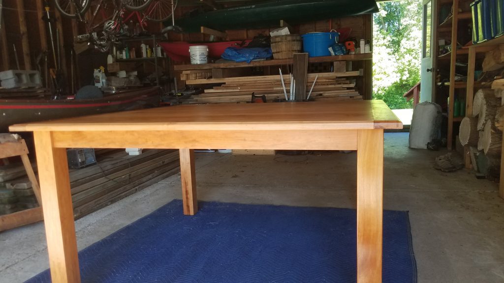 One of our neighbors has a large family (5 kids of their own and 8 adopted, yes 8 adopted). They were in need of a new kitchen table and because these people have done such an outstanding service to the community by giving homes to 8 kids that really needed a home, I build them this table for free. It measures 54 x 54 and is made of cherry. It a very simple design but fits into their kitchen and they will hopefully serve many meals at that table. I only wish I could do more for these wonderful people.