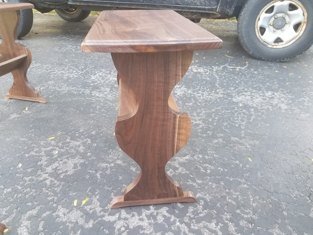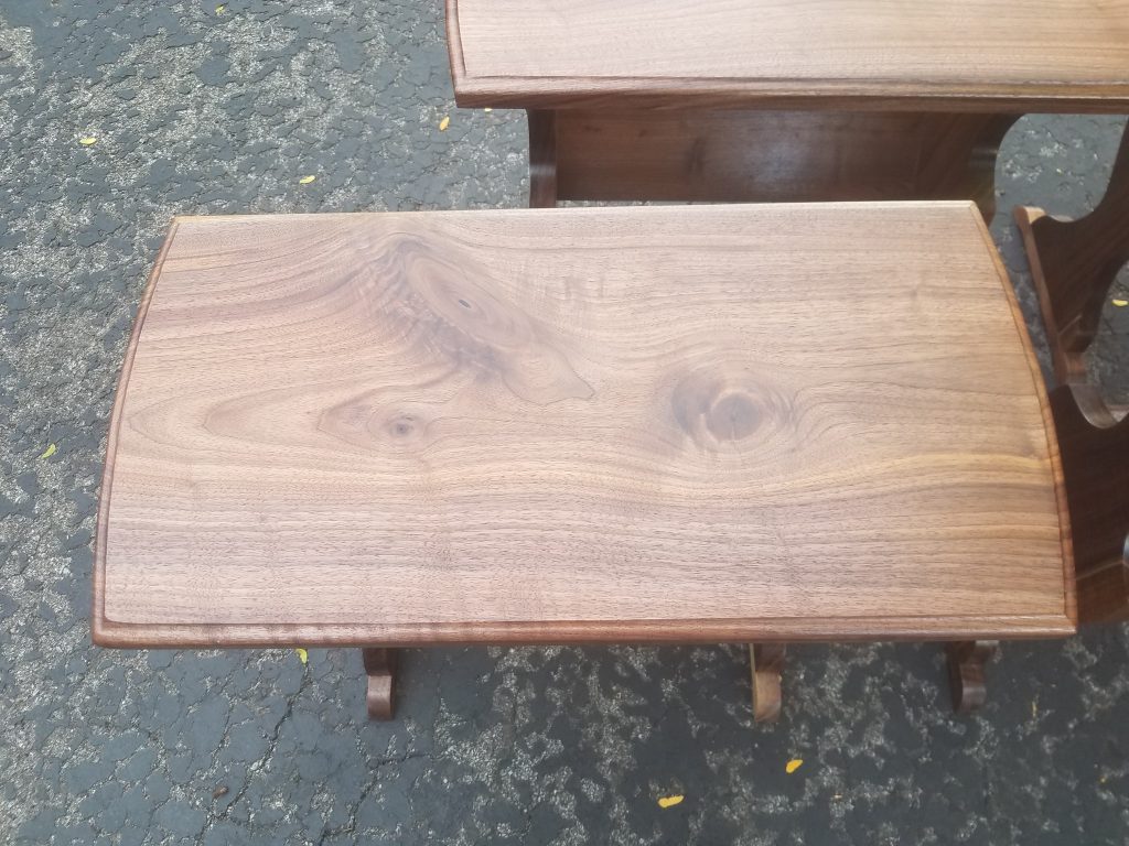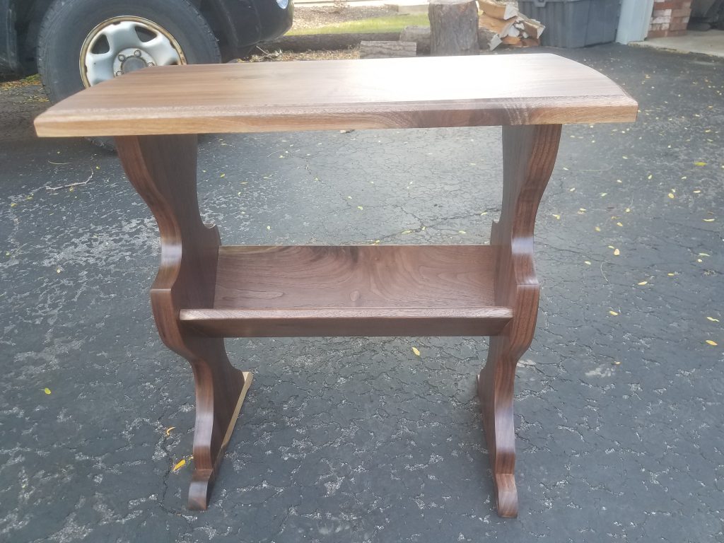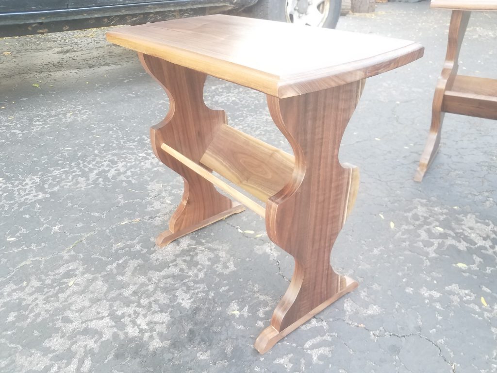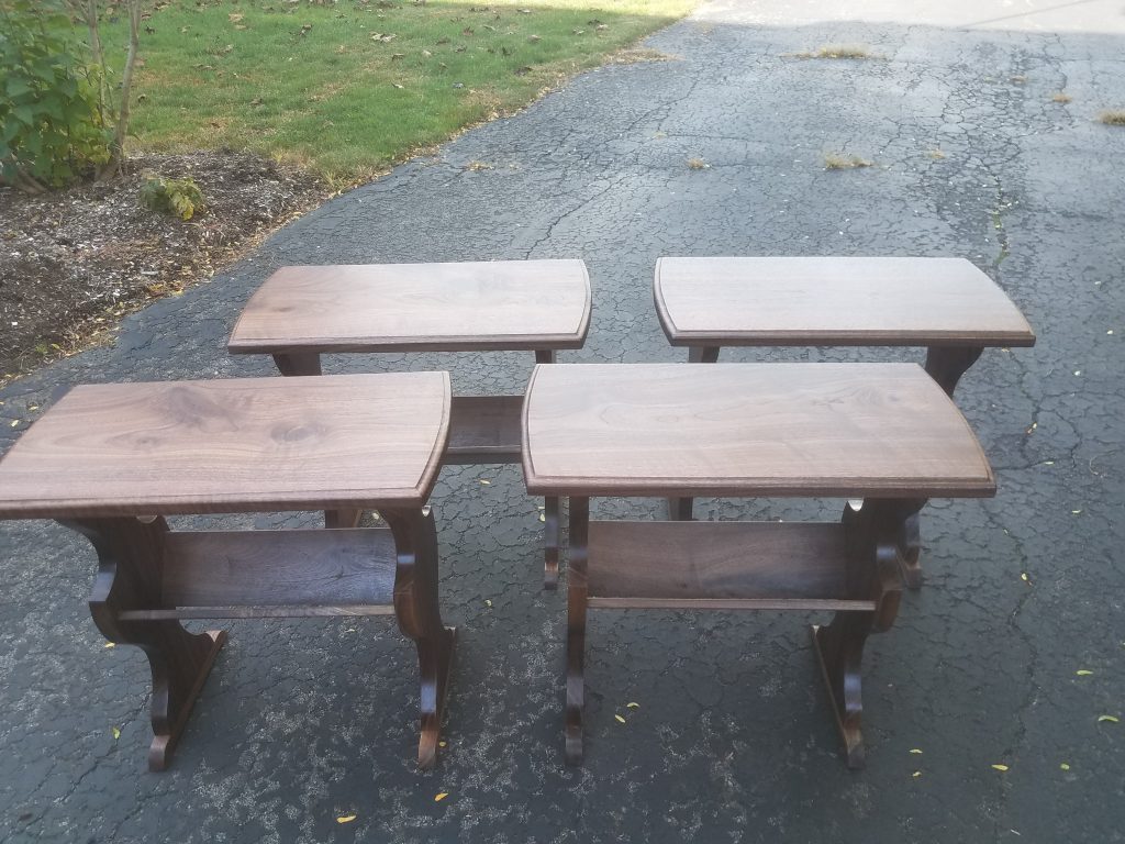 A customer of mine came to me with a side table that has been in his family for decades. He also had some lumber from a walnut tree that had been taken down from his yard. He wanted 4 new tables made out of that walnut that looked like the table that has been in his family. He can now give these tables to his kids and say that these are replicas of the one that has been in the family but were made out of that walnut tree that was in the yard of the house you grew up in. Pretty cool huh?