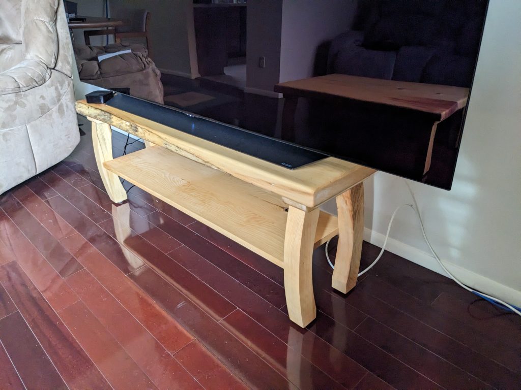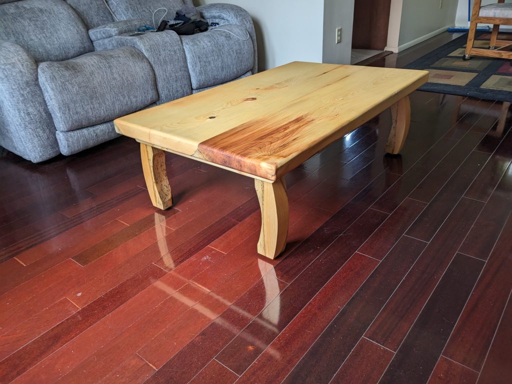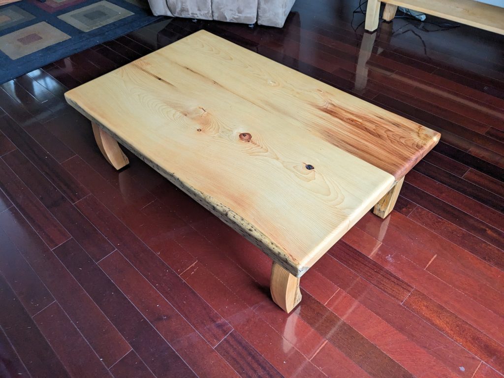 Just finished a coffee table and matching TV stand. These are made out of pine that come off a tree in front of cabin 8 at https://www.facebook.com/morningsidecamps/.